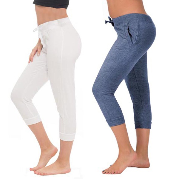 Coco Limon Women’s Solid Color French Terry Capri Joggers (2-Pack)