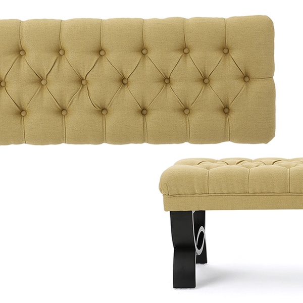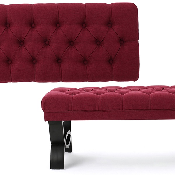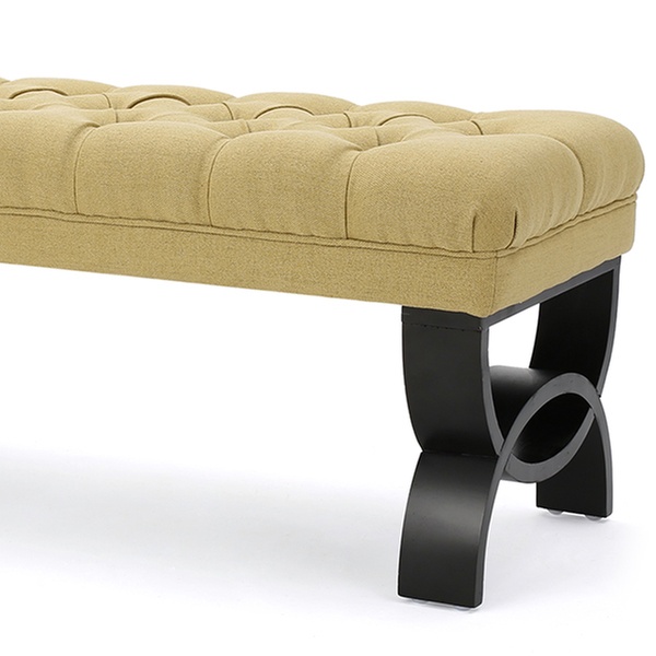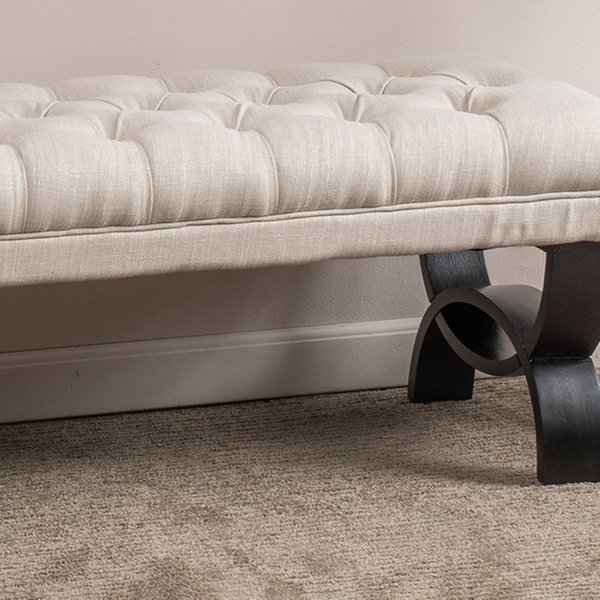 espresso-finish legs in a crossed design lend a modern look to the piece