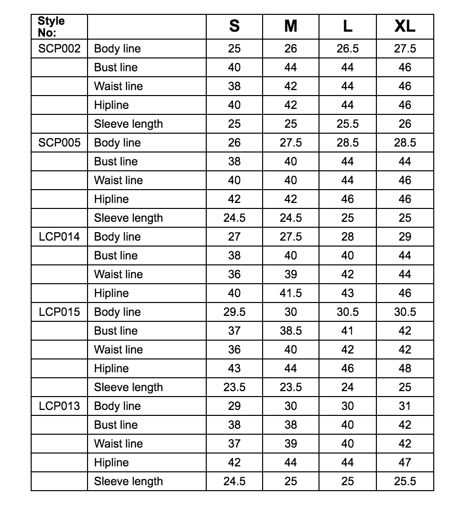 - View the sizing chart