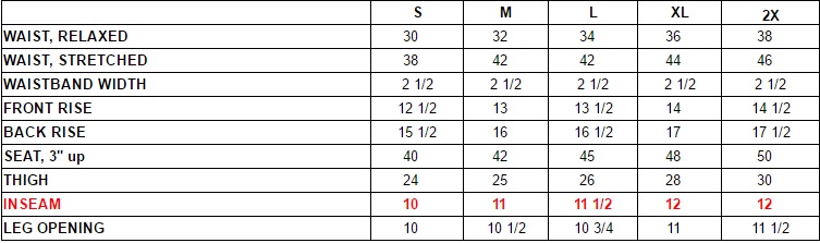 - Size chart