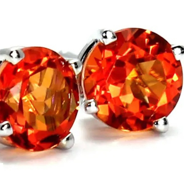 Paris Jewelry 14K White Gold Round 5MM Natural Orange Topaz Stud Earrings Plated Topaz White Gold Topaz November Birthstones Round 5 MM Orange