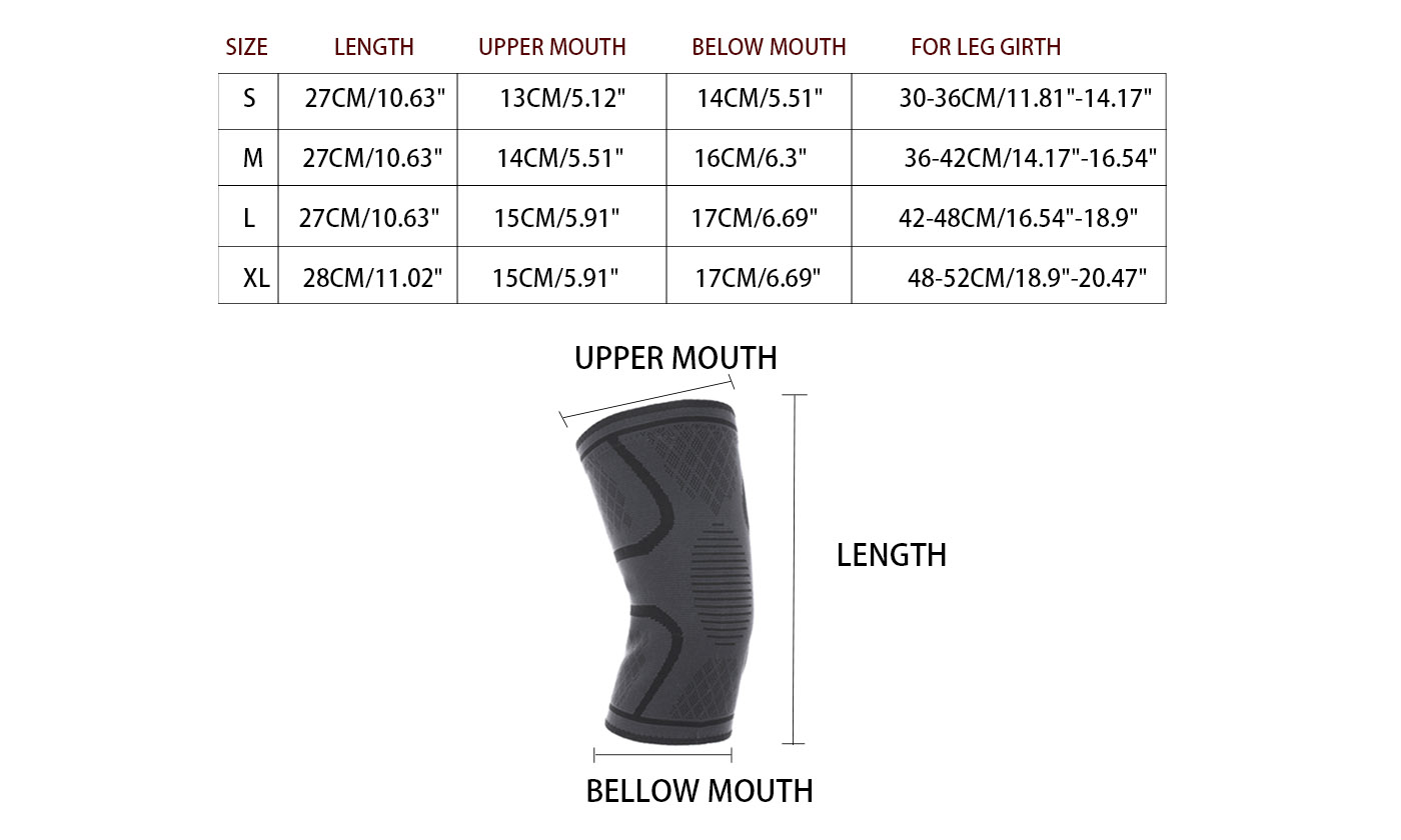 XL: 28cm/11.02"(L), 15cm/5.91"(Upper mouth),17cm/6.69"(Below mouth), for leg girth:48-52cm/18.9"-20.47"