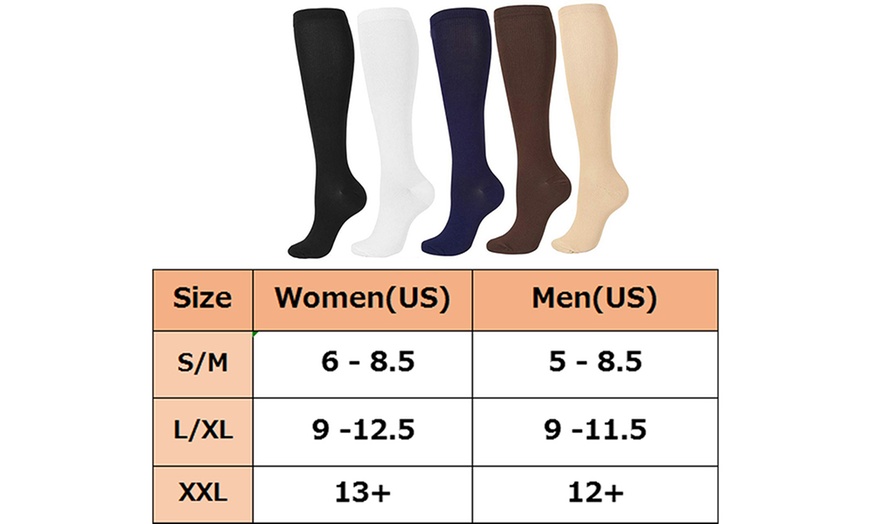 3-6 Pairs Knee-High Solid Compression Socks for Men & Women Graduated 15-20 mmHg Multi-color 5 Pack L/XL