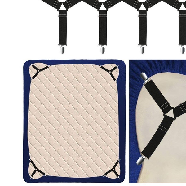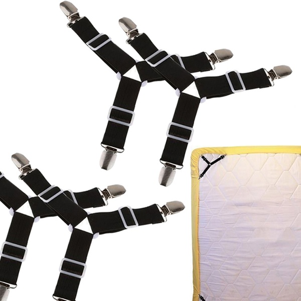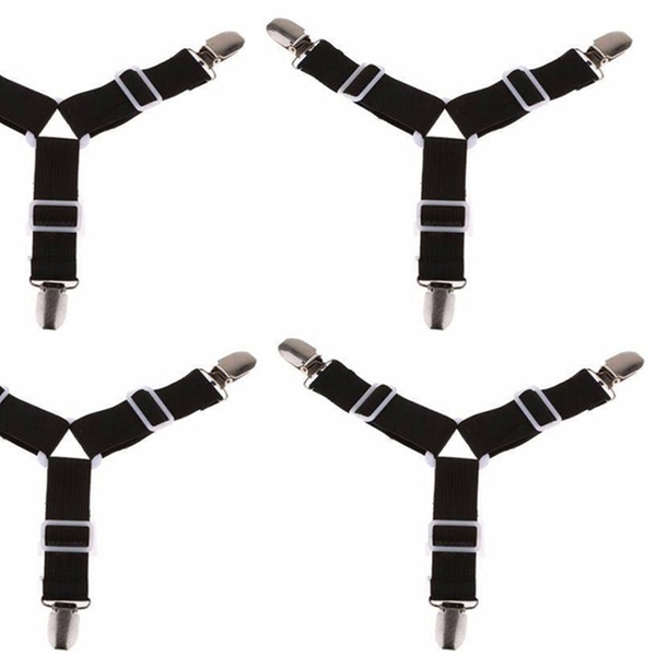 4pcs Triangle Bed Sheet Mattress Holder Fastener Grippers Clips Straps Suspender Black Standard 4 Pack