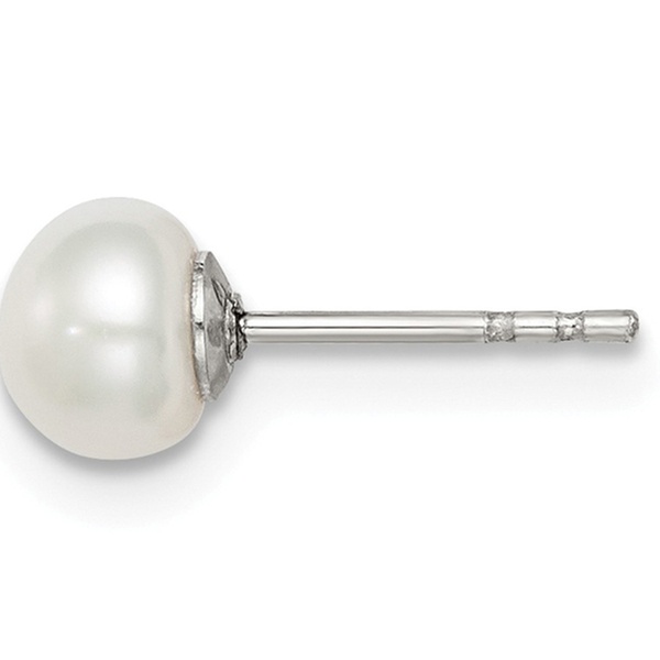 White Gold Plated 5mm White Freshwater Cultured Round Pearl Stud Earrings Pearl White White Gold Round 5 mm Freshwater Cultured June Birthstones