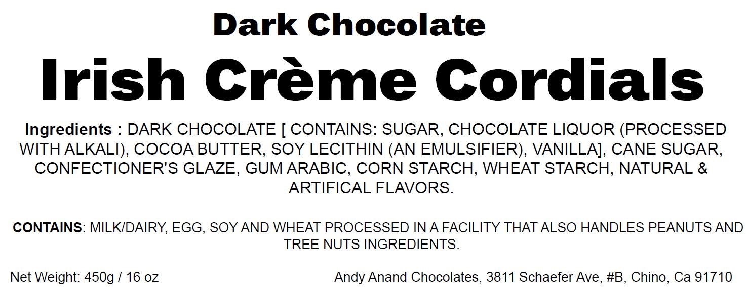 Andy Anand Dark Chocolate Irish Crème Cordials Amazing-Decadent Gift Boxed Box Packaging 1 lbs | 16 Ounce