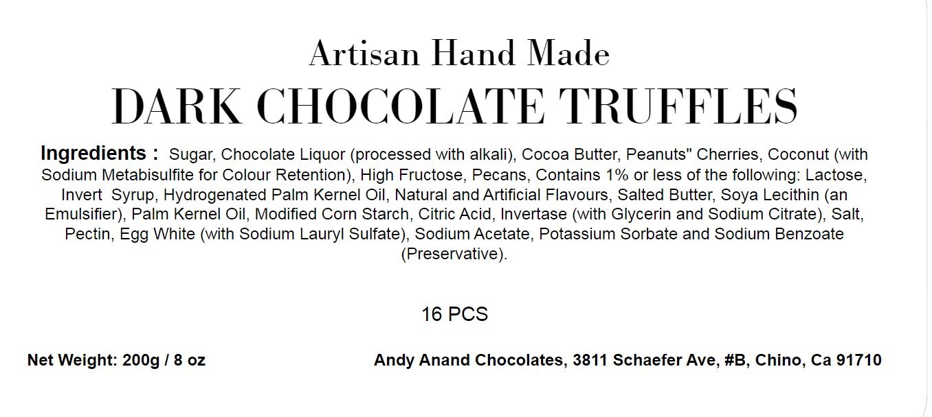 Andy Anand Dark Chocolate Truffles 16 Pcs Of Champagne, Rum, Amaretto Box Packaging 8 Oz 16 Pieces
