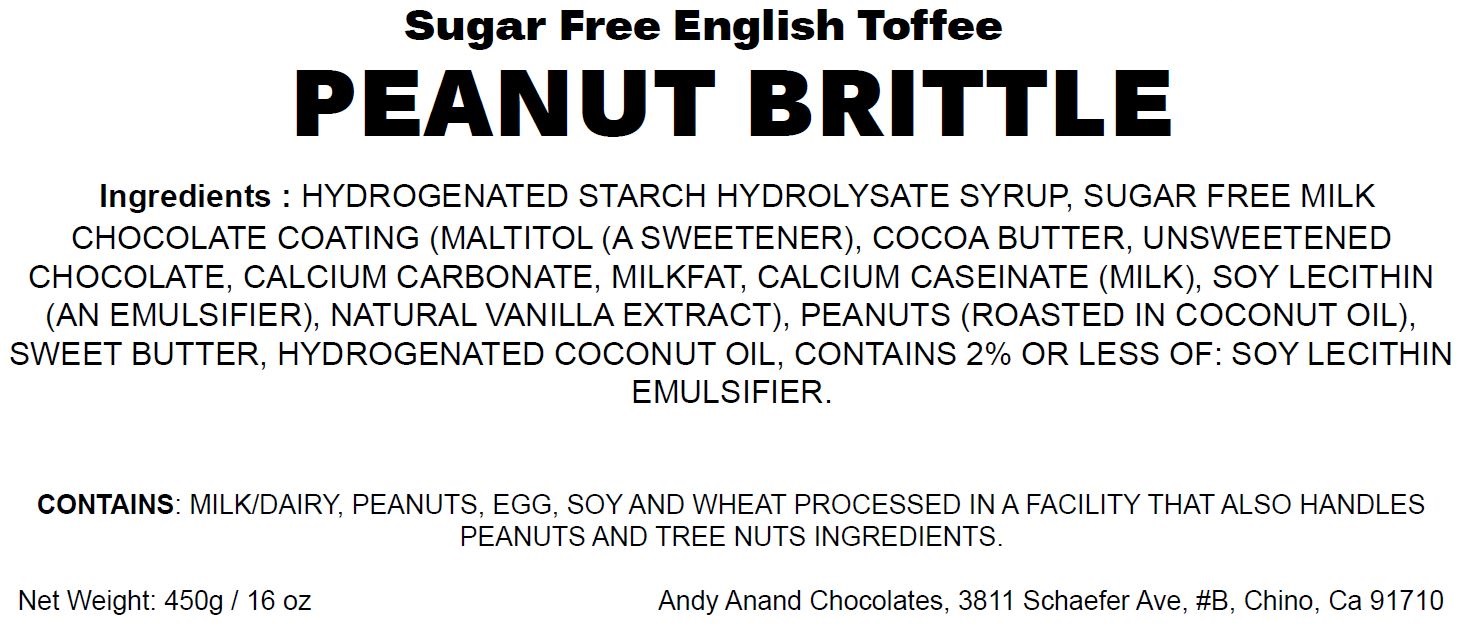 English Toffee Peanut Brittle Sugar Free Keto & Diabetic Friendly Box Packaging 16 Oz / 450 Grams Sugar Free English Toffee Peanut Brittle