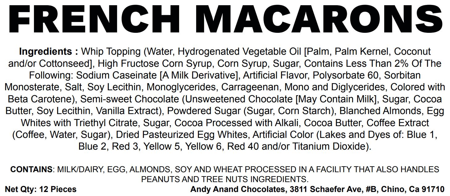 Andy Anand French Macarons 12 Pcs Made Fresh Daily Assorted Cookies Ready to Eat