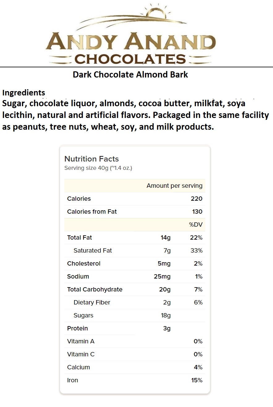 Andy Anand Old Fashioned Dark Chocolate Almond Bark Box 1 lbs