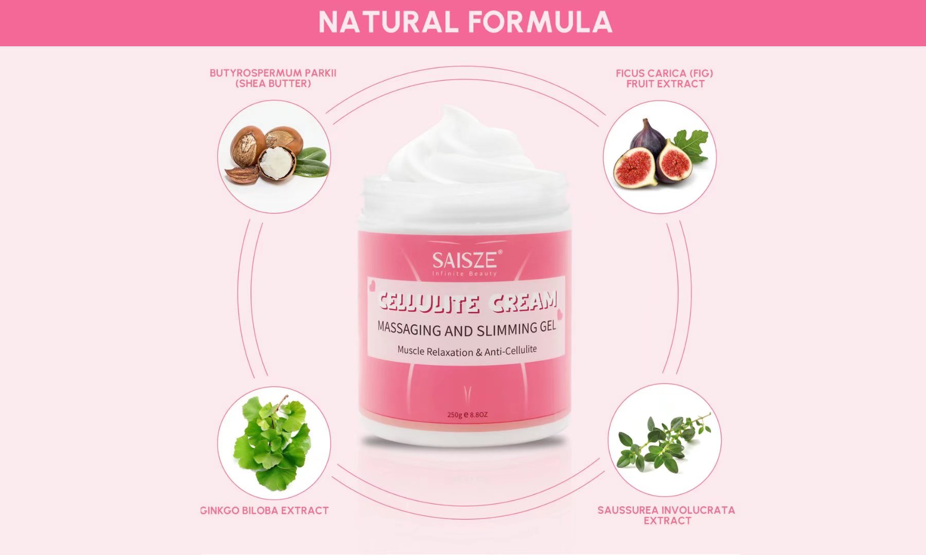 Saisze Cellulite Cream: reduces the appearance of cellulite to firm, tighten and lift the appearance of skin for a more toned and sculpted look