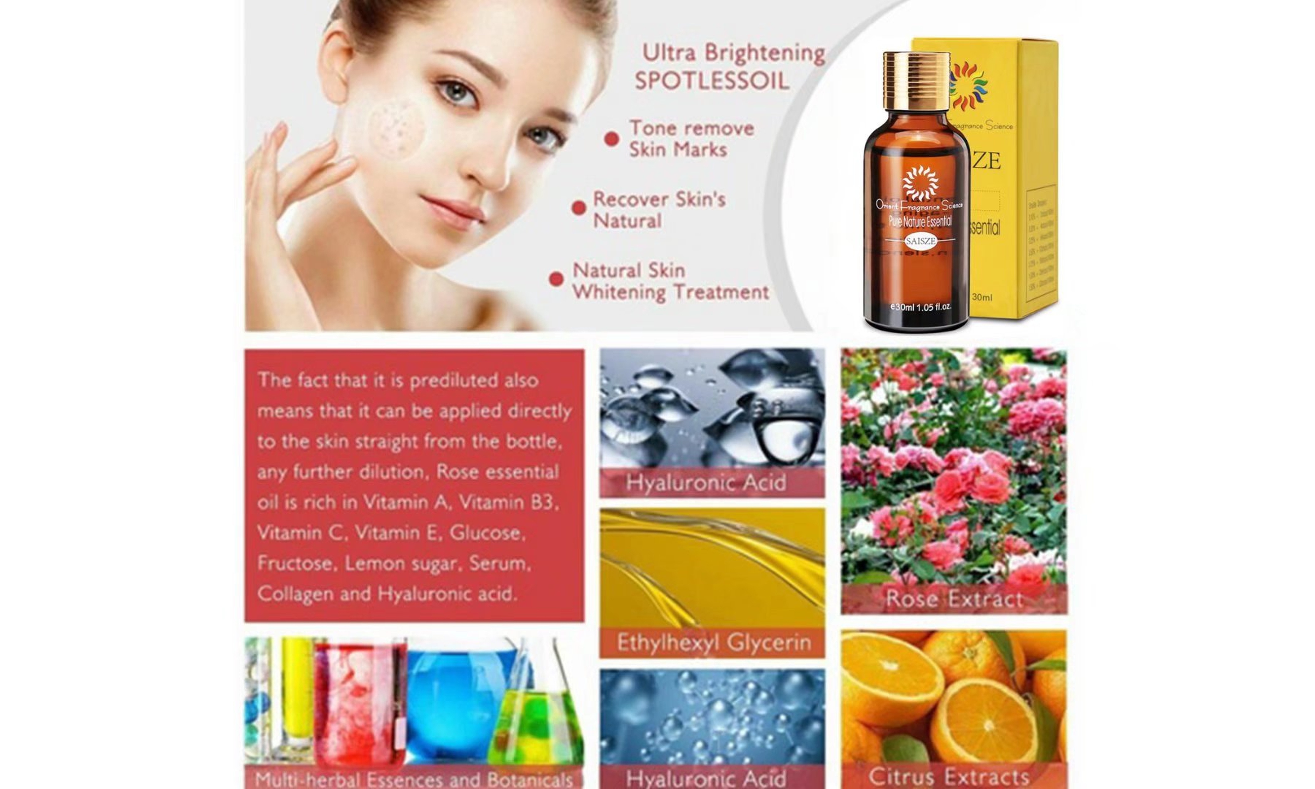 Brightening spotless oil is specialize in treating and correcting skin discoloration attributable to dark spots, age spots, and hyper-pigmentation.