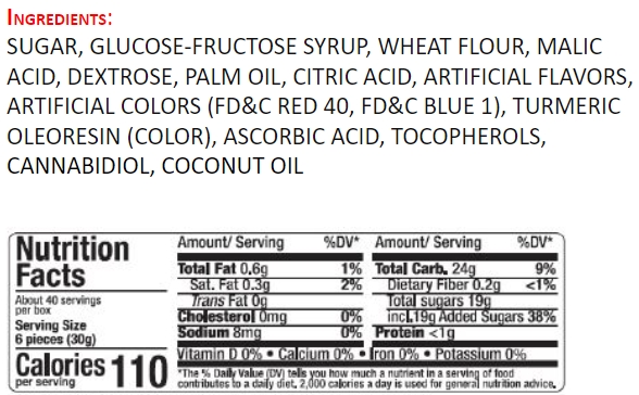 • Serving Size in Milligrams: Contains less than 0.3% THC