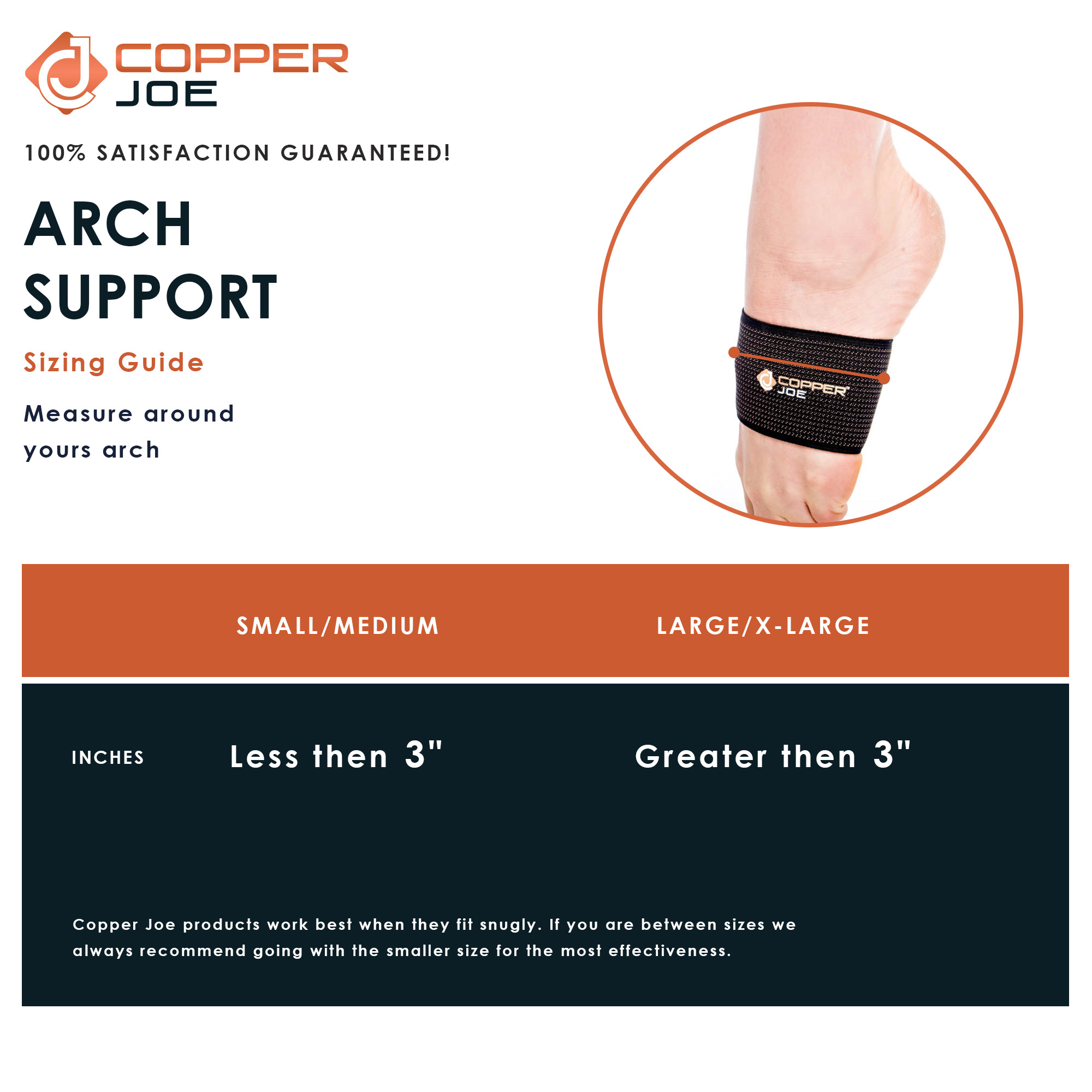 Copper Joe Arch Support Sleeves- 2 Plantar Fasciitis Braces/Sleeves -Men & Women