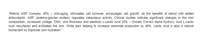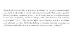 - Formulated with L-lactic acid and L-retinol AGP Gently exfol