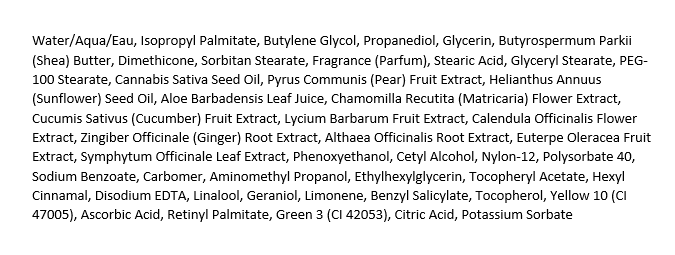 - Skincare Directions for Use: Smooth generously over entire body daily.