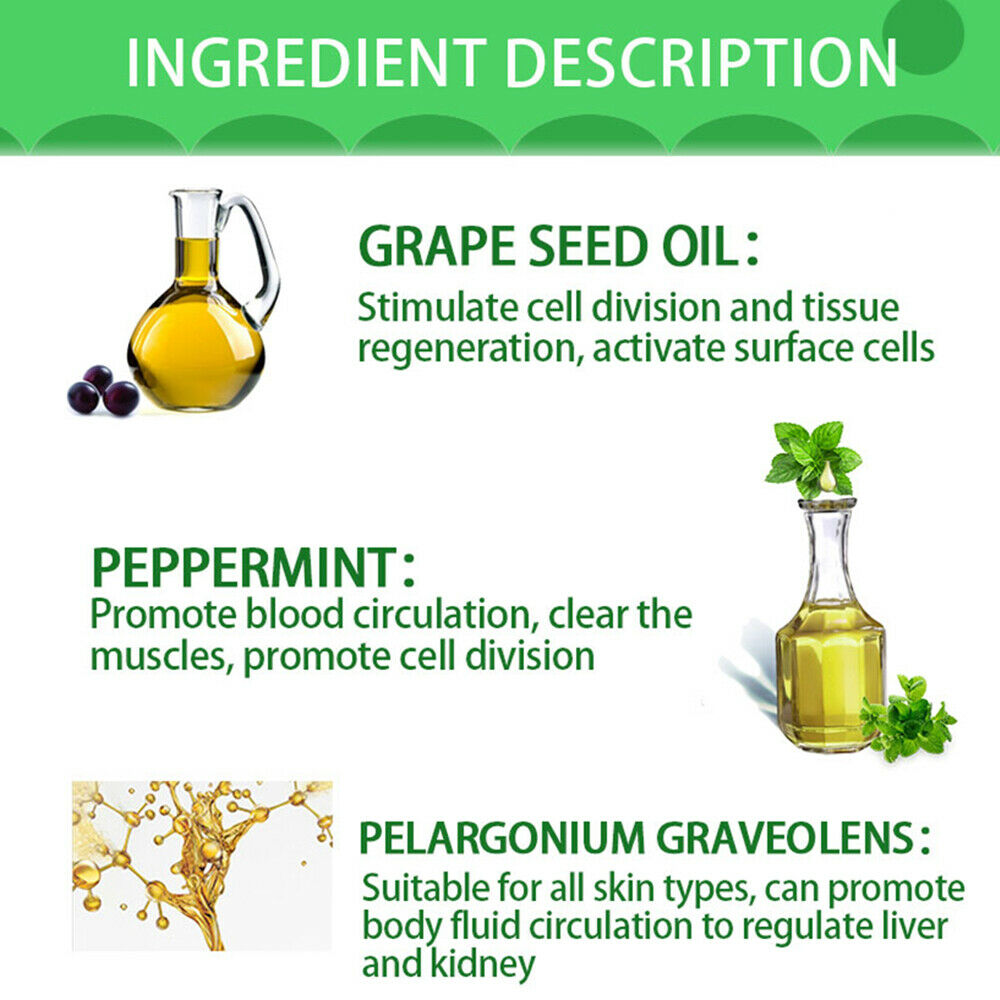 Ingredients: Vitis vinifera(grape) seed oil,mineral oil,caprylic/capric triglyceride,melaleuca alternifolia(tea tree) leaf oil,mentha haplocalyx oil,pelargonium graveolens leaf oil
