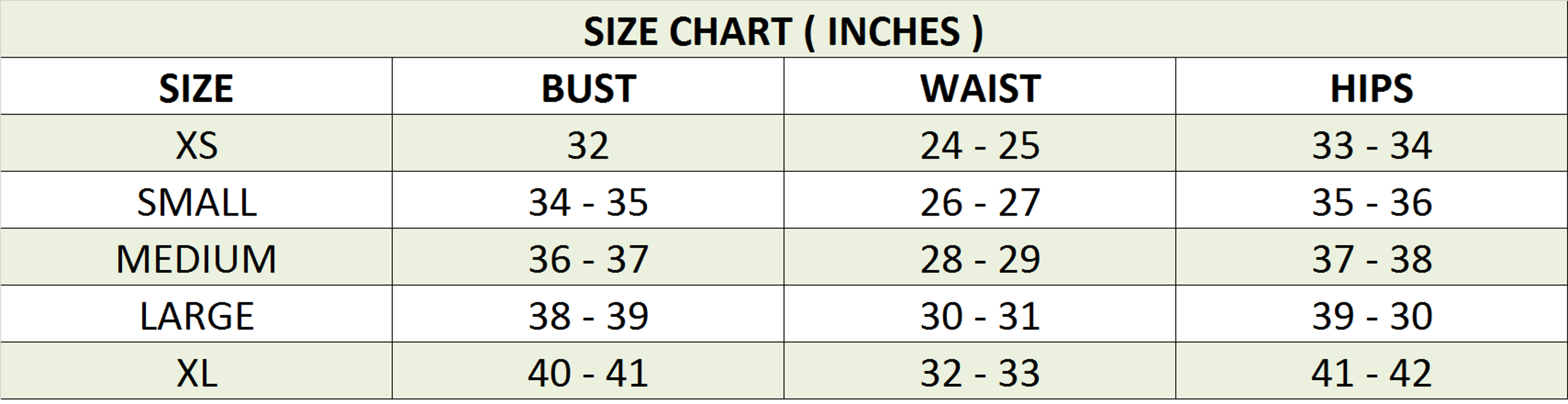 - Sizing Chart: Custom