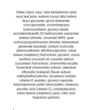 All Natural ingredients include orgnic shea butter, organic raspberry butter, organic aloe, organic cucumber, organic marigold, a unique combination of wheat, sugar and corn derived ingredients.