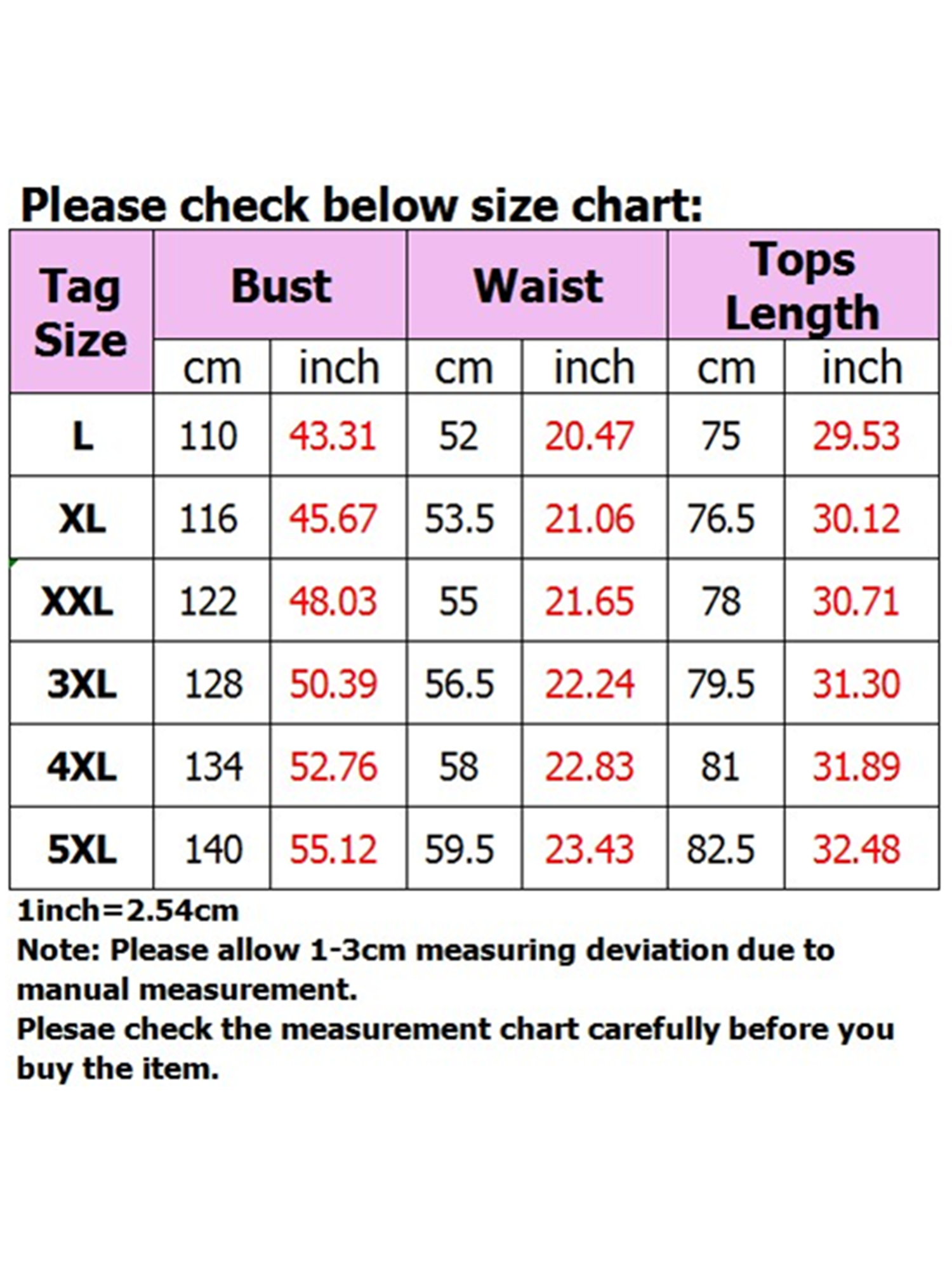 Size: L,XL,XXL,3XL,4XL,5XL
