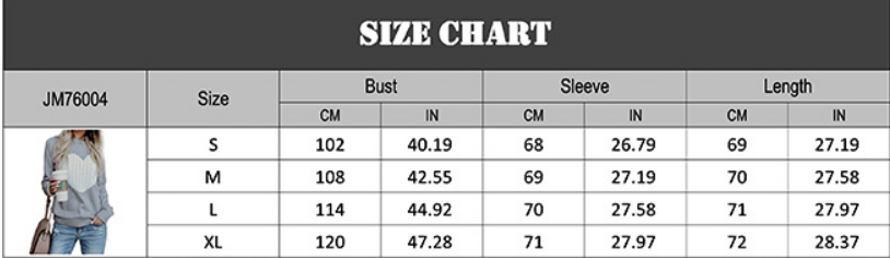 Women's Fashion Knitted Pullover Sweaters Crewneck Heart Patchwork Jumpers Tops M Grey