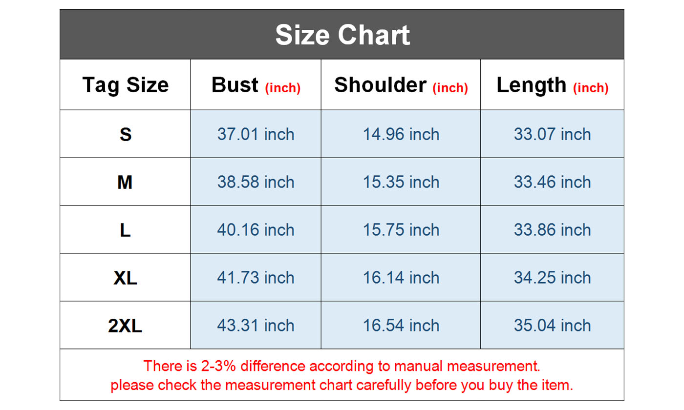 Optional Size: S, M, L, XL, 2XL (Please refer the details to the size chart)