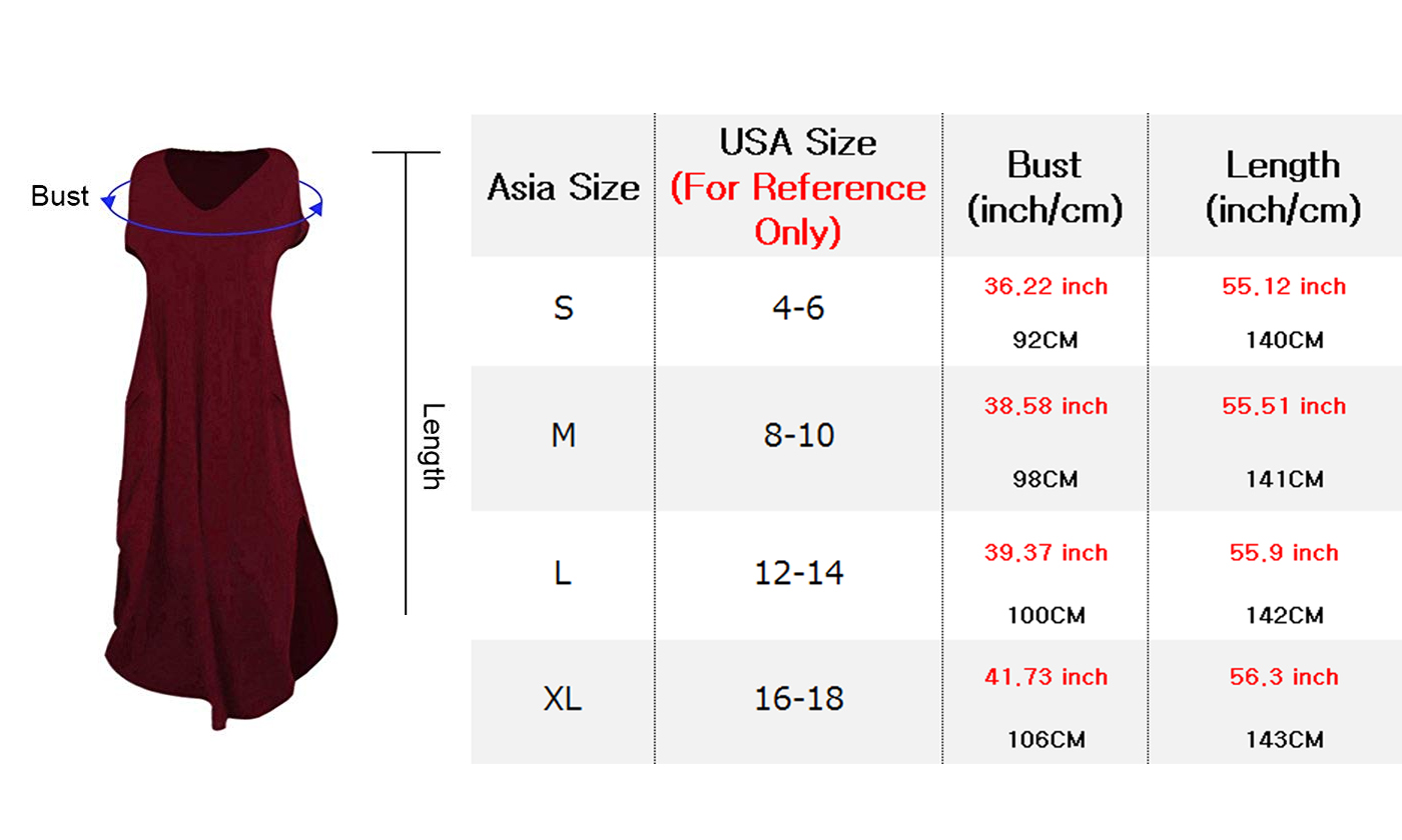 Women's Summer Maxi Dress Casual Loose Pockets Long Dress Short Sleeve Split Red L