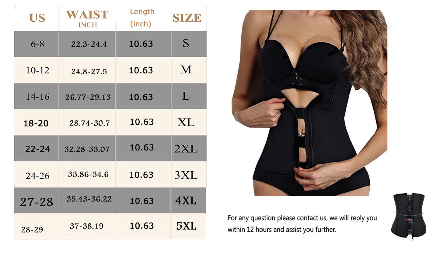 Women's Zipper&Hook Latex Underbust Corset Waist Training Body Shaper Black Waist Slimmer/Shaper 5XL(Recommend for waist 37.4-39.4 inch)