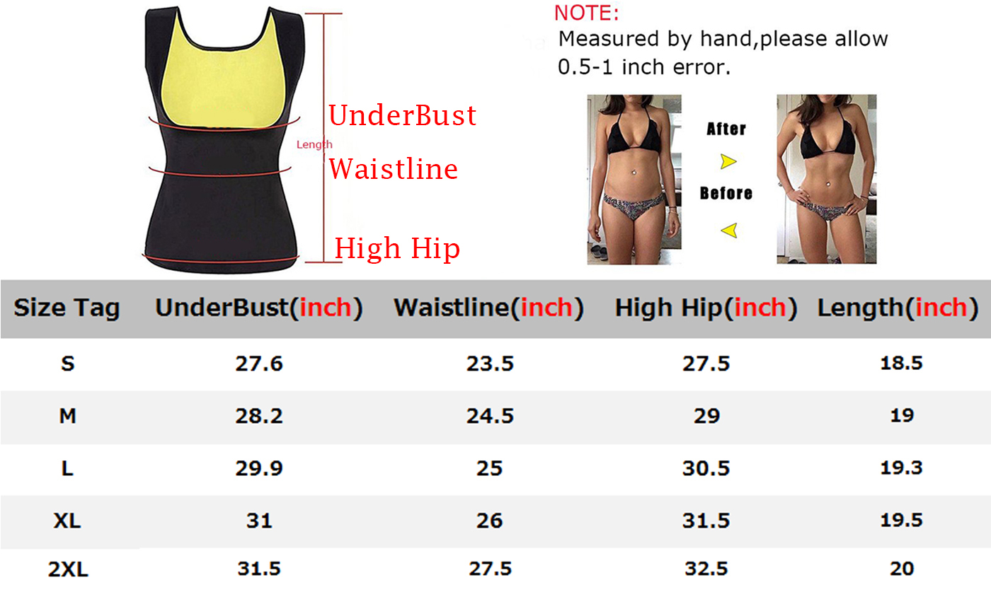 Women Sweat Neoprene Shirt Waist Trainer Vest Tummy Control for Weight Loss Black L Body Shaper