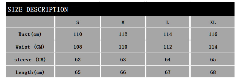 - Sizing Chart: Custom