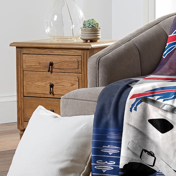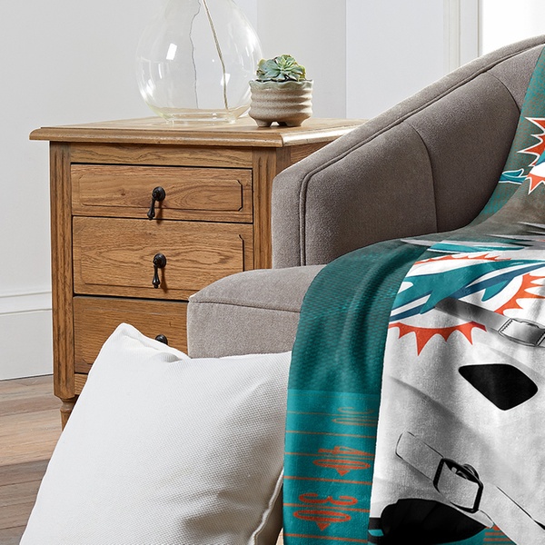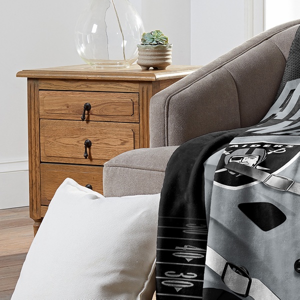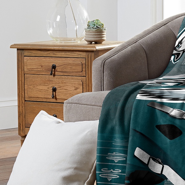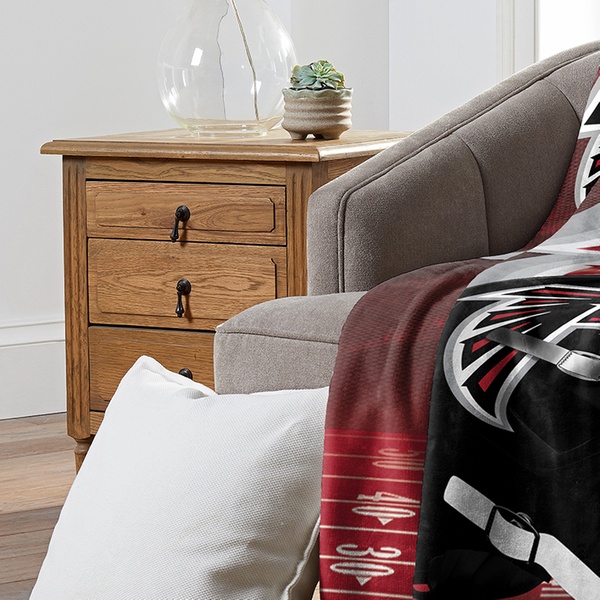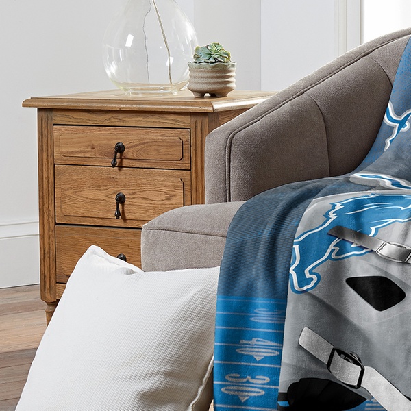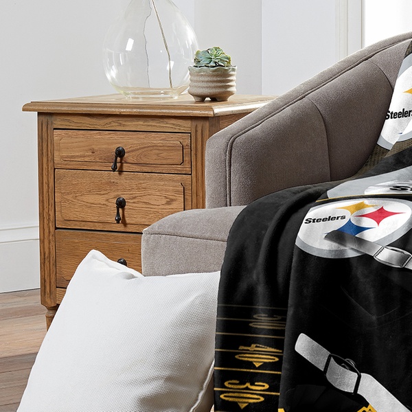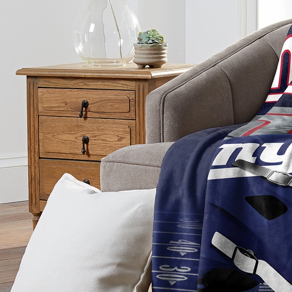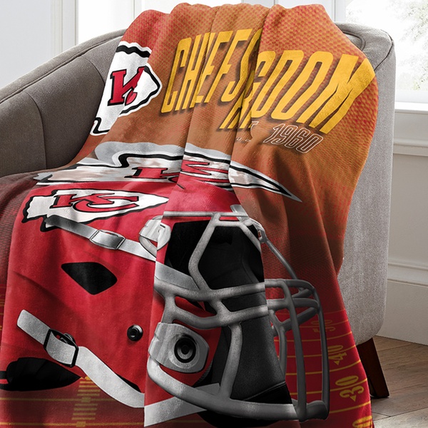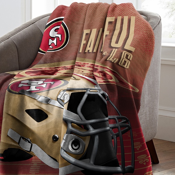 100% polyester throw blanket featuring officially licensed NFL team graphics in bold colors with silk touch or micro raschel weaves.