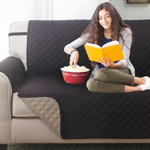 Reversible Furniture Slipcover Protectors: Multiple Sizes & Sets Available Black/Grey Sofa