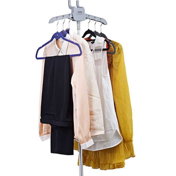 - 360-degree adjustable, extendable hanger perfectly fits clothes and folds up for easy storage
