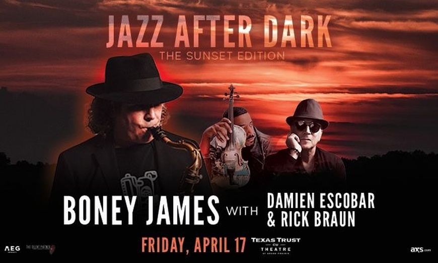Experience an unforgettable evening of contemporary jazz with the multi-Grammy-nominated saxophonist Boney James. Joining him for "Jazz After Dark" are the soulful violinist Damien Escobar and acclaimed trumpeter Rick Braun, promising a night of vibrant instrumental performances. This special event brings together three titans of instrumental jazz and R&B for a captivating show. Don't miss this unique opportunity to see these incredible artists share the stage.