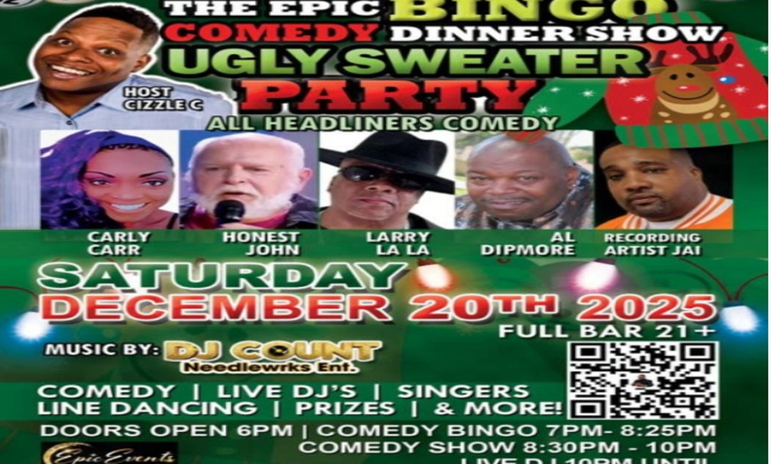 Step into a night where the energy is unstoppable and every moment is crafted to thrill - this is the show everyone will be talking about. Cizzle Entertainment brings together The Epic Bingo Comedy Dinner Show, a show which consists of electrifying performances, nonstop music, and a bold, hype-filled atmosphere that turns an ordinary night out into an unforgettable experience. If you're looking for the kind of event that hits harder, feels bigger, and leaves you wanting more, this is the one you don’t dare miss. Secure your tickets now and be part of the excitement that others will wish they didn’t sleep on.