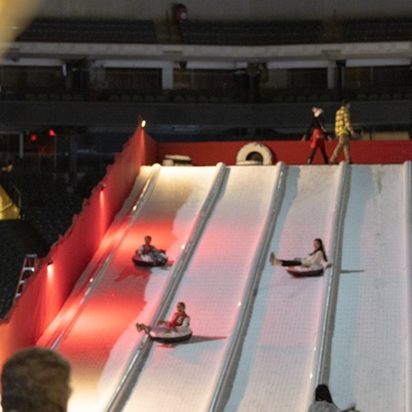 Glide along a dazzling ice skating trail that lights up your festive adventure!