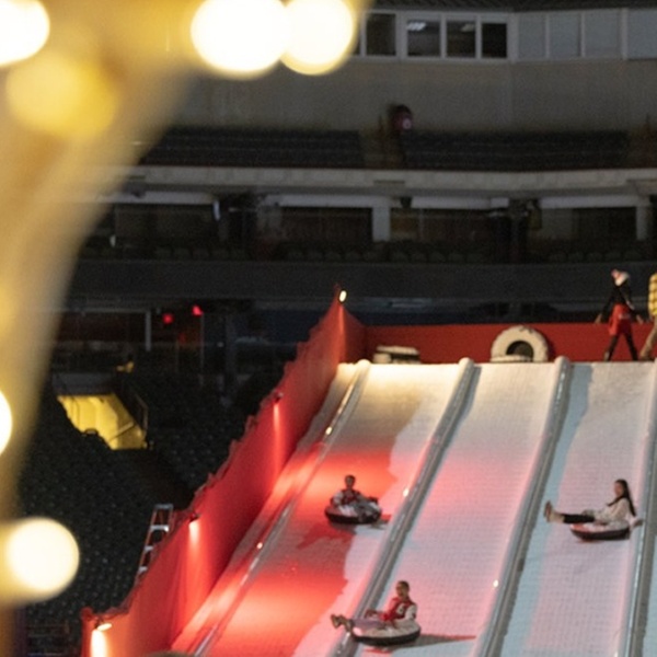 Glide along a dazzling ice skating trail that lights up your festive adventure!
