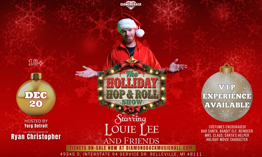 The most adrenaline-fueled holiday party is happening at Diamondback Music Hall on Saturday, December 20th! Get ready for The Holiday Hop & Roll starring the legendary Louie Lee & Friends!