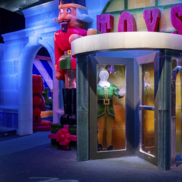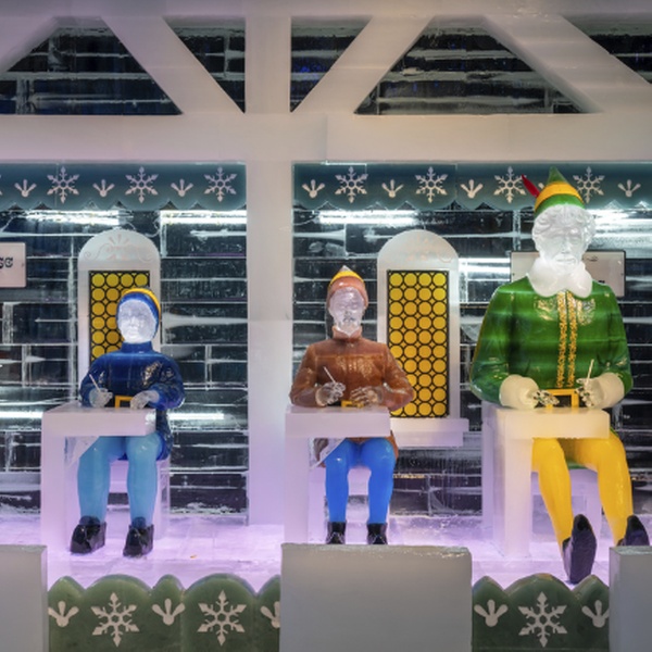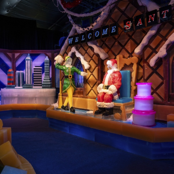 Discover scenes from the hit Christmas movie Elf™, brought to life in sculptures hand-carved from more than 2 million pounds of ice.