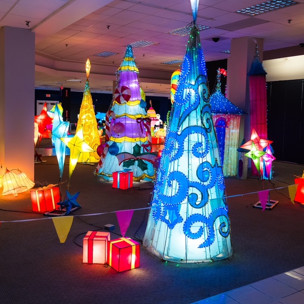 Families and friends can immerse themselves in the dazzling beauty of handcrafted Chinese lantern sculptures at the Illuminate Festival of Lights in Maplewood, MN, an indoor event packed with thrilling acrobatics, delicious treats, and unique photo opportunities