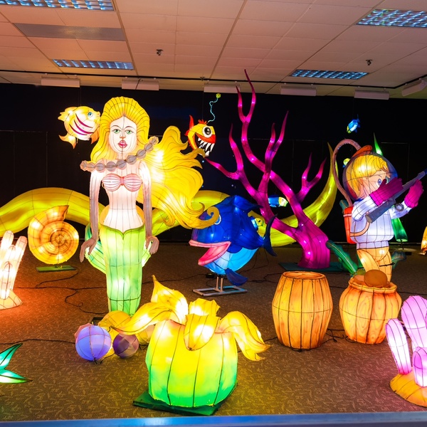 Immerse yourself in the exquisite artistry of handcrafted Chinese lantern sculptures, creating a magical atmosphere for all ages