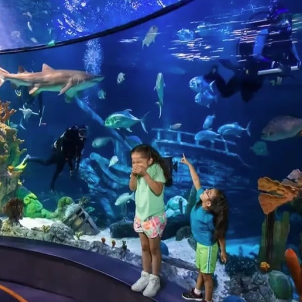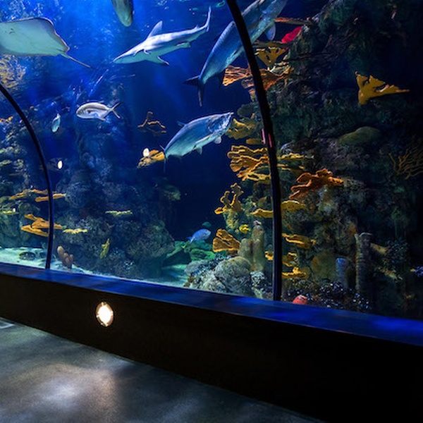 Dive into aquatic wonders at the 1.5-million-gallon Aquarium, home to penguins, sharks, and vibrant marine life from oceans worldwide