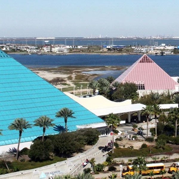 The 1.5-million-gallon Aquarium Pyramid allows you to explore the oceans' depths, featuring diverse creatures from tuxedo-clad penguins and playful seals to majestic stingrays and powerful sharks, spanning the Gulf Of Mexico, South Atlantic, North Pacific, South Pacific, and Caribbean.