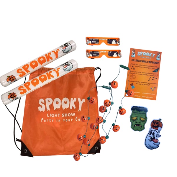 1 x General Admission 1 x Spooky Light Pack: 2 light wands, 2 pumpkin necklaces, 3D glasses, stickers & more!
