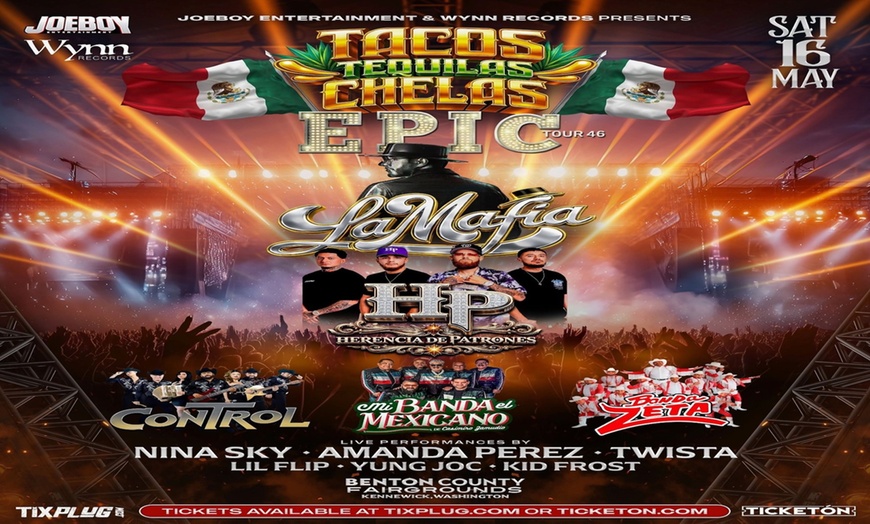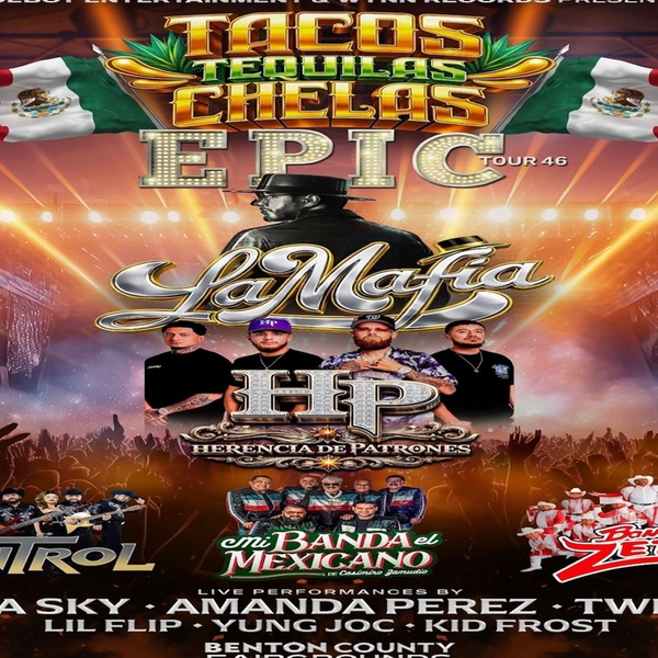 Experience the vibrant Tacos, Tequilas, Chelas Music Fest, an exciting event featuring a dynamic lineup of artists including La Mafia, Herencia De Patrones, Control, Twista, and many more. Enjoy a full day of diverse music performances starting at 1:00 PM, alongside a fantastic car show that kicks off bright and early at 10:00 AM. This festival promises a lively atmosphere for all ages, with kids under 8 enjoying free admission. Don't miss this unique blend of music, culture, and fun.