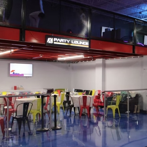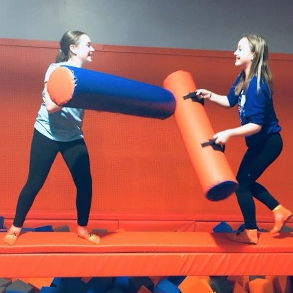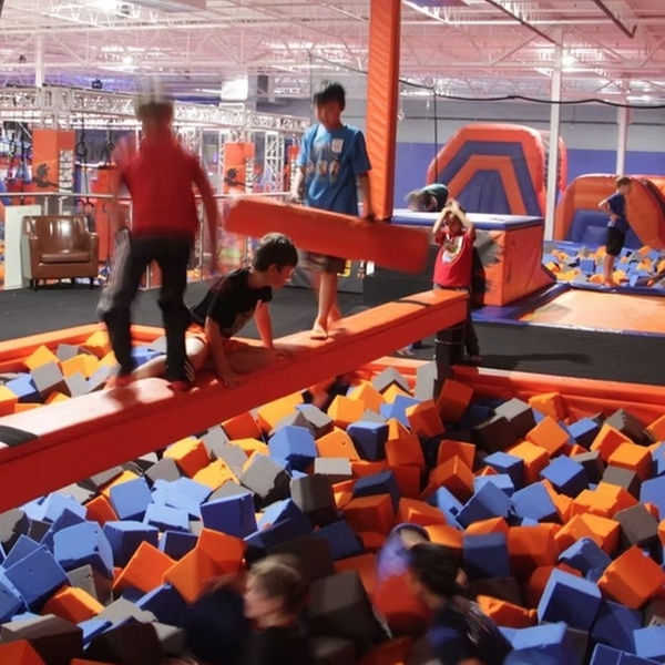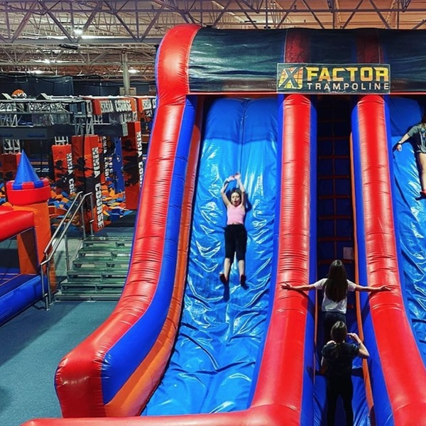X-Factor Trampoline Park features wall-to-wall trampolines, dodgeball courts, basketball hoops, and challenging attractions like Paxton's Tornado Chuck Challenge and Payton's battle beam Challenge. We also have an arcade, inflatables, and a dining area.