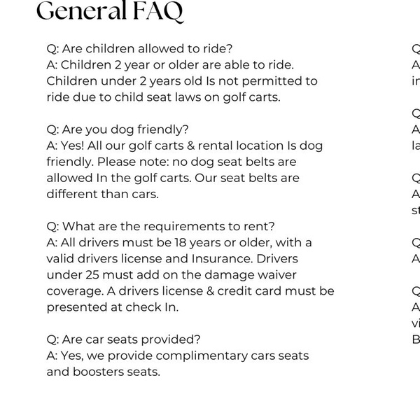 - No Kids under the age of 2 allowed to ride. (no exceptions)