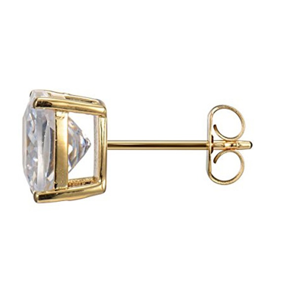 18K Yellow Gold Plated Sterling Silver 8.5mm Cushion 5 cttw CZ Stud Earrings Yellow Gold Cubic Zirconia Cushion 5 ct Cubic Zirconia White April Birthstones 8.5 mm