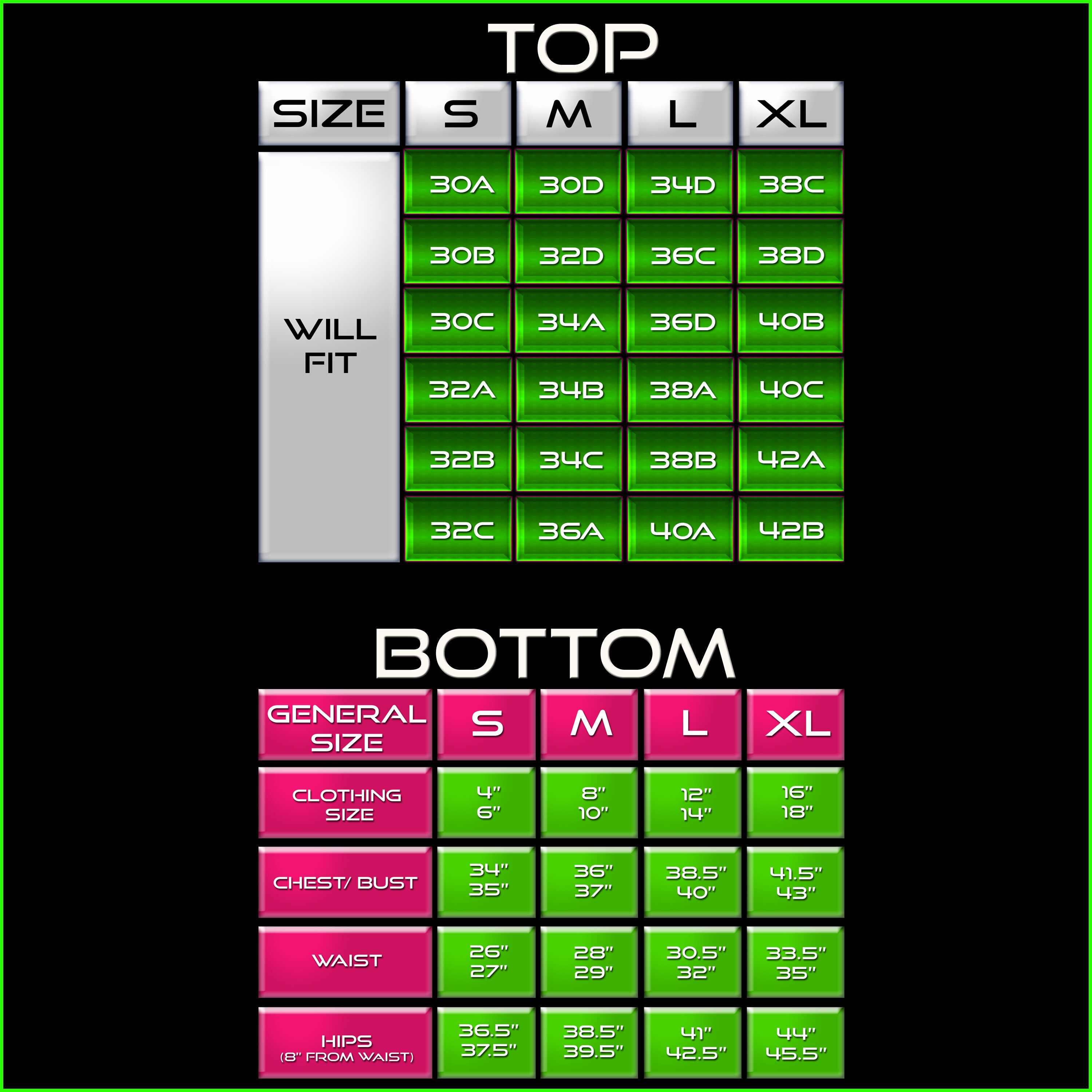 - Sizing Chart: Custom