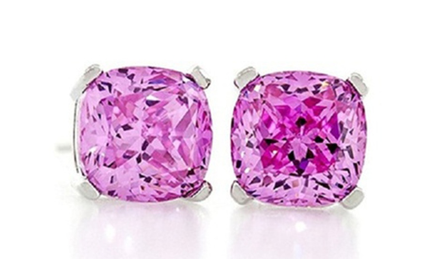925 Sterling Silver 2.50 Ct Cushion 6mm Pink Cubic Zirconia Stud Earrings Sterling Silver Cubic Zirconia 2 1/2 ct Cubic Zirconia February Birthstones Pink Cushion 6 MM